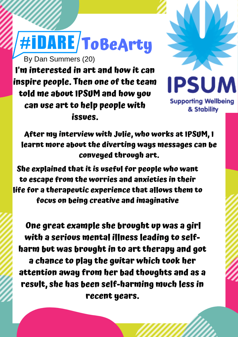 I'm interested in art and how it can inspire people. Then one of the team told me about IPSUM and how you can use art to help people with issues.