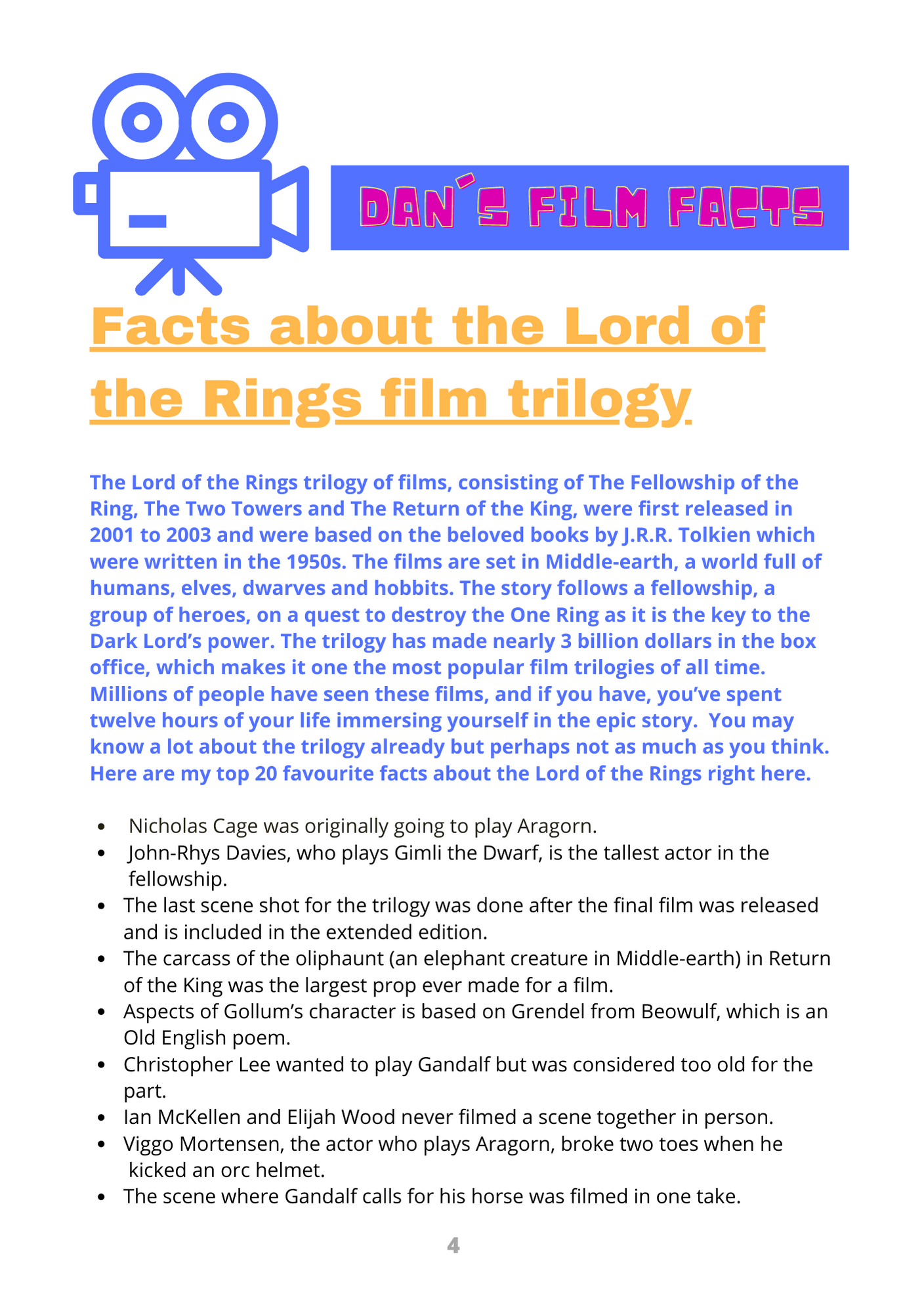 Dan's Film Facts: Lord of the Rings trilogy