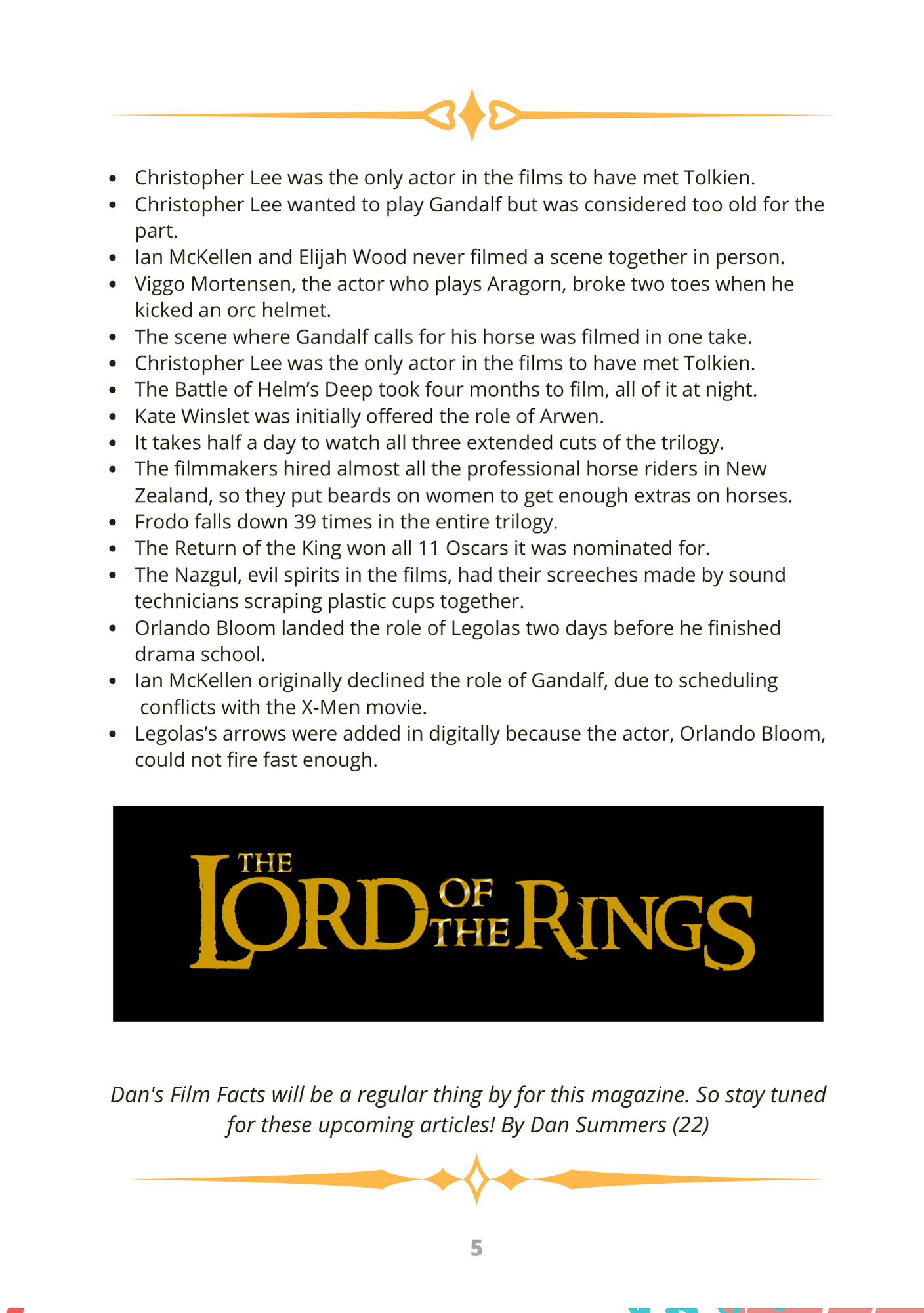 Dan's Film Facts will be a regular thing by for this magazine. So stay tuned for these upcoming articles!
