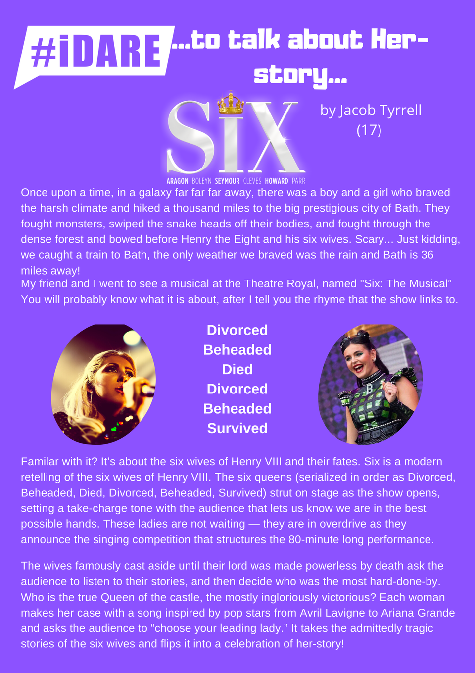 My friend and I went to see a musical at the Theatre Royal, named ~Six: The Musical” You will probably know what it is about, after I tell you the rhyme that the show links to.