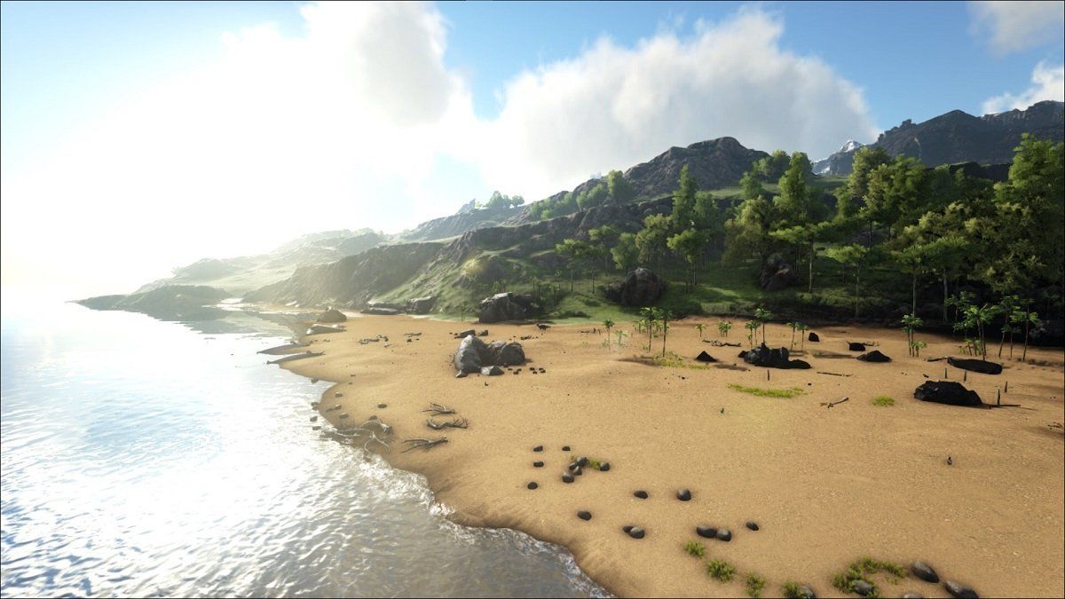 There are enough things in this game that are deadly. But apart from the dinos and bugs, heat and exposure can be deadly too. Staying on the beach, therefore close to the water and in an area that can be found easily could seem like the smart choice in the beginning. But it's the opposite. Other than the nearness of the water, nothing is good about the beach.