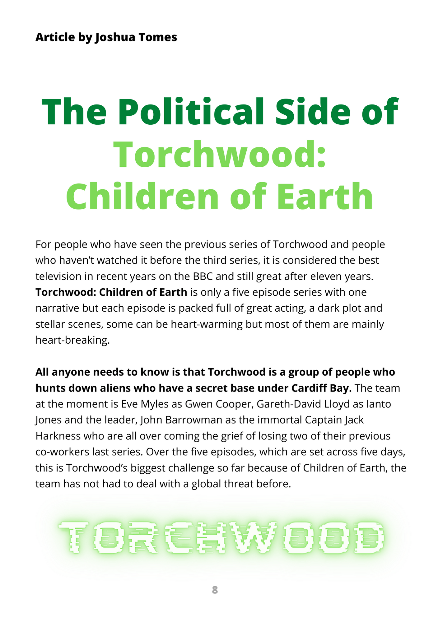 For people who have seen the previous series of Torchwood and people who haven’t watched it before the third series, it is considered the best television in recent years on the BBC and still great after eleven years. Torchwood: Children of Earth is only a five episode series with one narrative but each episode is packed full of great acting, a dark plot and stellar scenes, some can be heart-warming but most of them are mainly heart-breaking.
