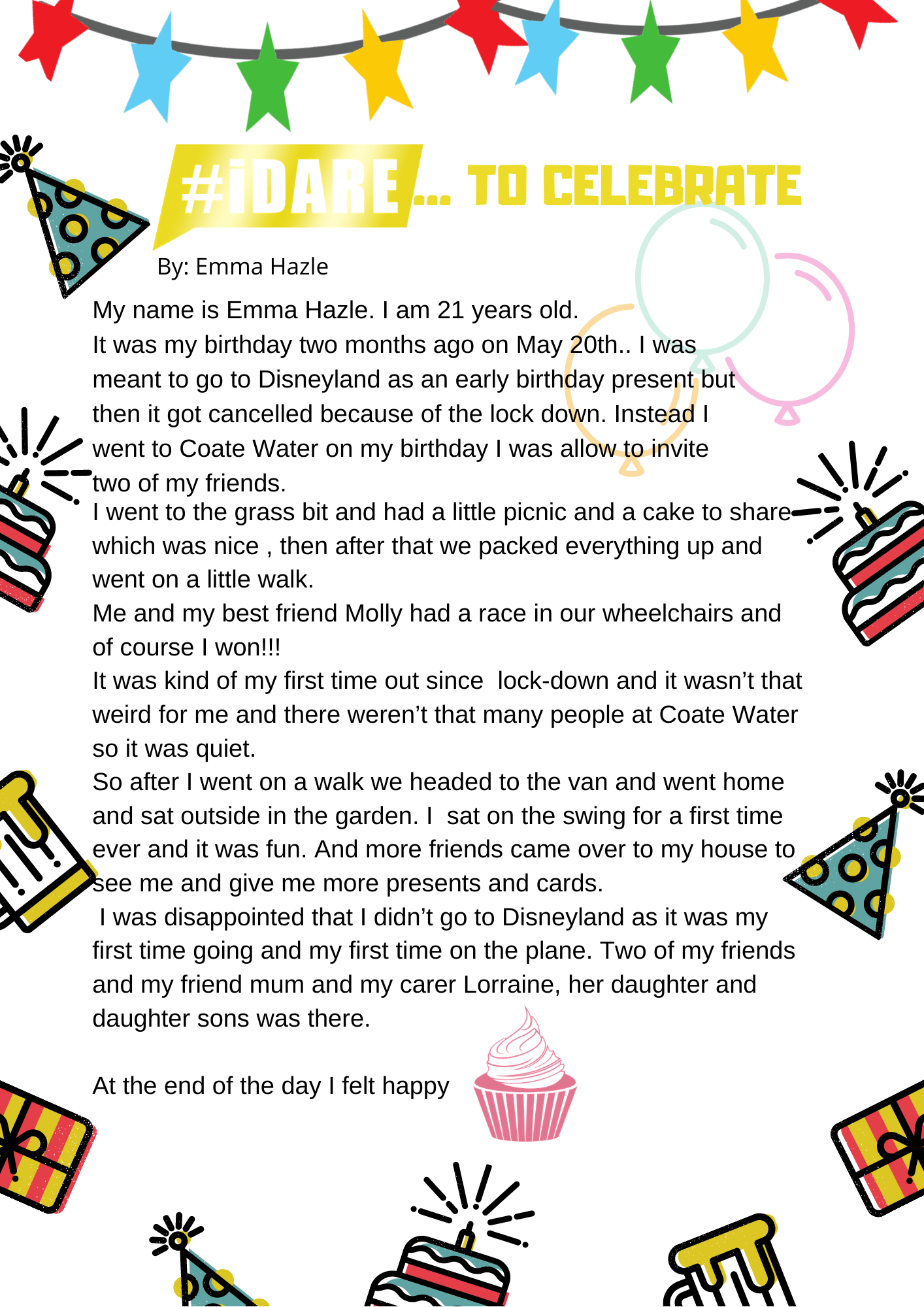 It was my birthday two months ago on May 20th.. I was meant to go to Disneyland as an early birthday present but then it got cancelled because of the lock down. Instead I went to Coate Water on my birthday I was allowed to invite two of my friends.